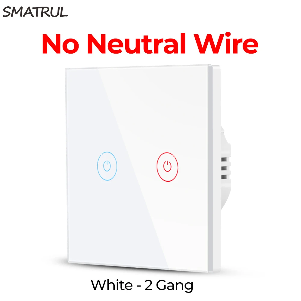 | 24 | SMATRUL 2 Gang No Neutral Wire touch Wall Switch Light LED Lamp power Crystal Glass Screen EU UK Standard Sensor on off 220VColor:white 2 gang,Standard:EU Standard |