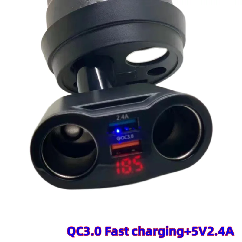 Digital Display 120W 2 Ways LED Car Cigarette Lighter Double Power Socket Splitter Adapter + Dual USB QC3.0 Fast Car Charger | ||||