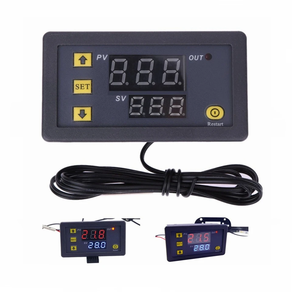 W3230 12V 24V AC110-220V Probe Line 20A Digital Temperature Control LED Display Thermostat With Heat/Cooling Control Instrument